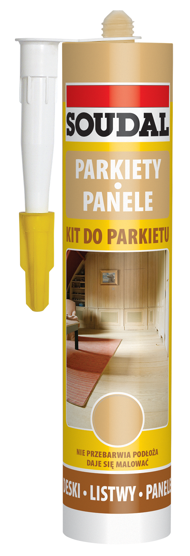 Kit do parkietu Soudal znajduje powszechne zastosowanie przy maskowaniu różnego rodzaju szpar i pęknięć w podłogach wykonanych z elementów drewnianych, a także wypełnianiu ubytków, rys oraz szczelin połączeniowych m.in. w boazeriach, przepierzeniach oraz drewnianych framugach okiennych i drzwiowych. Kit do parkietu możemy ponadto wykorzystać do wykonania spoin pomiędzy ścianą a listwami przypodłogowymi lub ościeżnicowymi, jak również do wypełniania szczelin w okolicach progów i narożników.